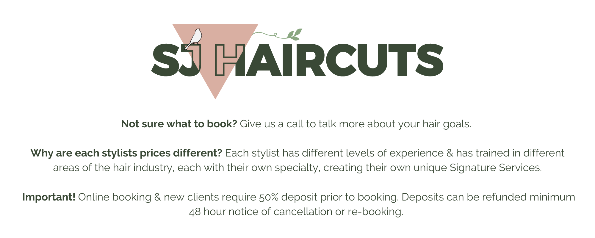 *All of our Haircuts are gender inclusive. They are based on length, amount of time & styling involved, determined at your Stylists discretion.